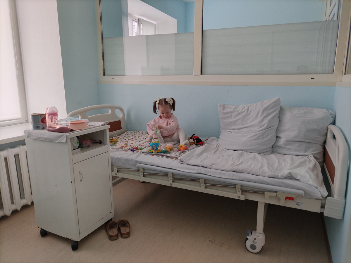 В среду к 10 часам нам надо было быть в стационаре. Не написала в предыдущей статье главную новость вторника. Старших посадили на дистант из-за роста распираторных инфекций. И конечно вечером Марго умудрилась сломать свой телефон :((( Очередной. Часть от зарядки обломилась и осталась в гнезде. Так что утром разбудила девочек, посадила их вдвоем за ноутбук. Лизок вошла со своего аккаунта, сама. Умница, научилась. Егорку отвела в садик, приготовила детям обед и подняла Полю. Собрались, вызвала такси. Народу в приемном отделении было много, так что показала розовую справочку и пояснила, что ребенок с инвалидностью. Нас пригласили без очереди. Оформляли долго. Папка с обследованиями и заключениями за последний месяц получилась внушительная. Да и история Полиной болезни тоже не коротенькая. В понедельник Оксана Николаевна обращаясь к гастроэнтерологу сказала, вы маму не слушайте, задавайте ей конкретные вопросы, а то она о своем ребенке может часами рассказывать :)))) Но даже с конкретн