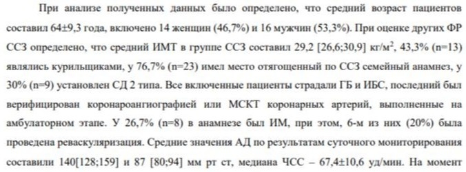 Выдержки из текстов статей буду выкладывать анонимно, но при желании, конечно, можно нагуглить источник. И ещё: рассматриваемые ошибки не всегда объясняются невежеством авторов. Иногда они связаны с невнимательностью, опечатками и т.д. Все мы люди, в конце концов. Но хотелось бы, чтобы при рецензировании такие недочёты выявлялись и исправлялись. Итак, пример № 1 Кажется, авторы перепутали форматы описательной статистики. ИМТ, АД, согласно тексту, представлены средними значениями. Однако формат X [Y; Z], а также целые значения для АД - скорее указывают на медиану и квартили. Напротив, для ЧСС вроде бы указана медиана, однако формат X±Y характерен для среднего значения и стандартного отклонения. Кроме того, маловероятно, что ЧСС измерялась у пациентов дробными значениями, это целочисленный параметр. А в таком случае медиана может быть только целой или иметь дробную часть .5, а не как в статье - 67.4. Как исправить? Это несложно. Для АД и ИМТ написать, что данные представлены медианами. Д