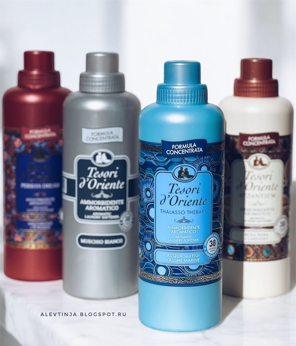 И снова здорово - кондиционер для белья от любимого Tesori d'Oriente. Сегодня поговорим о варианте Талассотерапия. Заказать можно: - в Золотом яблоке - на Яндекс маркете - в Лэтуаль Поскольку я уже неоднократно говорила о том, как прекрасно смягчают наши кондиционеры бельё, этот момент пропустим. Сразу перейду к главному - к аромату. Производитель расписал его по нотам: верхние ноты: Бергамот и Лимон; средние ноты: Морская соль и Морские водоросли; базовые ноты: Мускус и Кедр. В целом всё звучит очень свежо, похоже на мужской парфюм, где преобладают так называемые морские мотивы. Запах слышен и на мокром, и на сухом белье. Причём долго, и это отлично! Но лучше использовать кондиционер со средством для стирки без отдушки, тогда аромат раскроется во всей красе. Он унисекс, подойдет и женщинам, и мужчинам, но последним понравится чуточку больше (сужу по мужу). Скажу честно, моим любимчиком этот аромат не стал, хотя он интересный, многогранный. Я пользуюсь им без проблем, но всё же