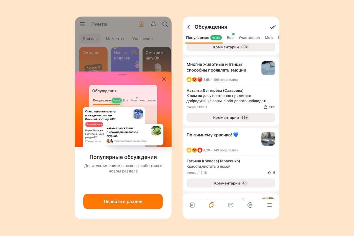 Социальная сеть «Одноклассники» представила обновленный раздел «Обсуждения», который теперь включает в себя усовершенствованные инструменты для обмена мнениями и просмотра актуального контента. Ключевым нововведением стала вкладка «Популярные», где пользователи могут найти самые обсуждаемые темы и персонализированные публикации. Алгоритмы машинного обучения анализируют интересы каждого пользователя и предлагают наиболее релевантные для него обсуждения. Вкладка «Популярные» содержит: - актуальные посты с максимальным количеством комментариев за несколько дней; - виджет «Горячая тема» с самыми обсуждаемыми дискуссиями суток; - возможность комментировать, ставить реакции и делиться публикациями. По словам директора по продукту ОК Александра Москвичева, обновленный раздел призван улучшить пользовательский опыт взаимодействия с контентом. Учитывая, что раздел ежедневно привлекает около 2,5 миллиона посетителей, разработчики сосредоточились на создании более удобного инструмента для обсужден