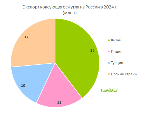По данным «Анализа рынка коксующегося угля в России», подготовленного BusinesStat в 2025 г, в 2024 г его экспорт из страны достиг 62 млн т. В 2020-2024 гг происходила смена направления российского экспорта с западного на восточное. Доля Китая в суммарном объеме поставок коксующегося угля за рубеж выросла с 22% до 40%, доля Индии – с 4% до 17%, доля Турции – с 3% до 16,5%. К основным драйверам роста экспорта в Китай и Индию можно отнести активное развитие сталелитейной, автомобильной, цементной и других отраслей, которые выступают крупными потребителями коксующегося угля. К тому же качество добываемого в Китае и Индии коксующегося угля невысокое, а импортный уголь дешевле топлива, которое производится внутри этих стран. Однако на рынках Китая, Индии и Турции идет жесткая конкуренция между странами-поставщиками коксующегося угля. Полный обзор рынка на РБК: https://marketing.rbc.ru/research/27644/ Полный обзор рынка на нашем сайте: https://businesstat.ru/catalog/id8484/