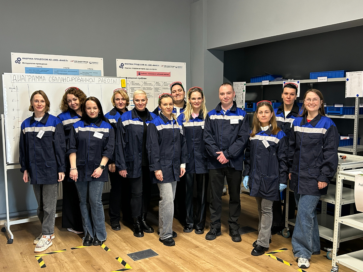 Команда Регионального центра компетенций (РЦК) в сфере повышения производительности труда Калининградской области при Центре «Мой бизнес» приняла участие в деловой игре на учебно-производственной площадке «Фабрика процессов» опытного конструкторского бюро «Факел» (входит в интегрированную структуру АО «НПО Энергомаш» Госкорпорации «Роскосмос»). Фабрика начала свою работу с января 2025 года. Целью мероприятия стало практическое освоение инструментов бережливого производства и повышение эффективности рабочих процессов. В рамках деловой игры участники были вовлечены в процесс сборки двух типов двигателей для космических аппаратов. Командам необходимо было оптимизировать производственную цепочку, выявить и устранить узкие места, сократить время цикла при сохранении качества продукции. Директор АО «ОКБ «Факел» Павел Дронов: «Для ОКБ «Факел» как для предприятия, ориентированного на инновации и высокие стандарты качества, участие в Федеральном проекте «Производительность труда» и запуск «Фабр