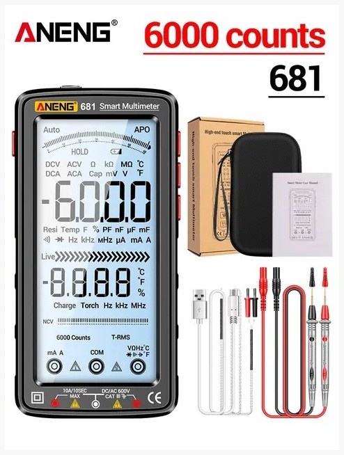 Цифровой мультиметр ANENG 681 SMART — это надежный и многофункциональный инструмент, предназначенный для измерения различных электрических параметров. Он идеально подходит как для профессионалов, так и для любителей, обеспечивая точные и быстрые результаты.