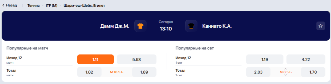 Сегодня ставка на теннис. Матч проходит в Шарм-эш-Шейх, Египет. Ставка на фаворита. Смотрим, что из этого выйдет.