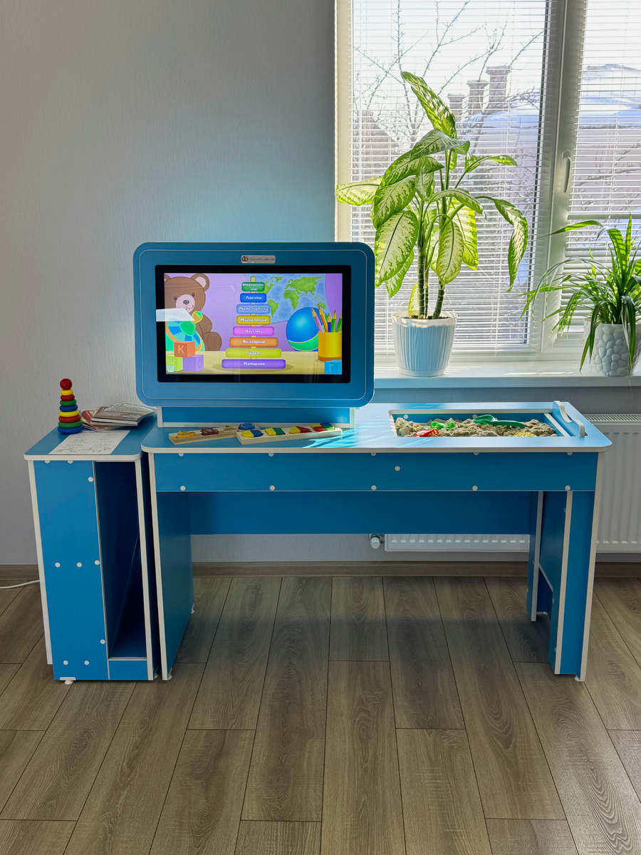 Цветовая палитра в кабинете должна быть спокойной и нейтральной, чтобы не вызывать излишних эмоциональных реакций у клиентов. На фото - профессиональный интерактивный стол психолога-дефектолога «AVKompleks ПсихоЛогика Edu»