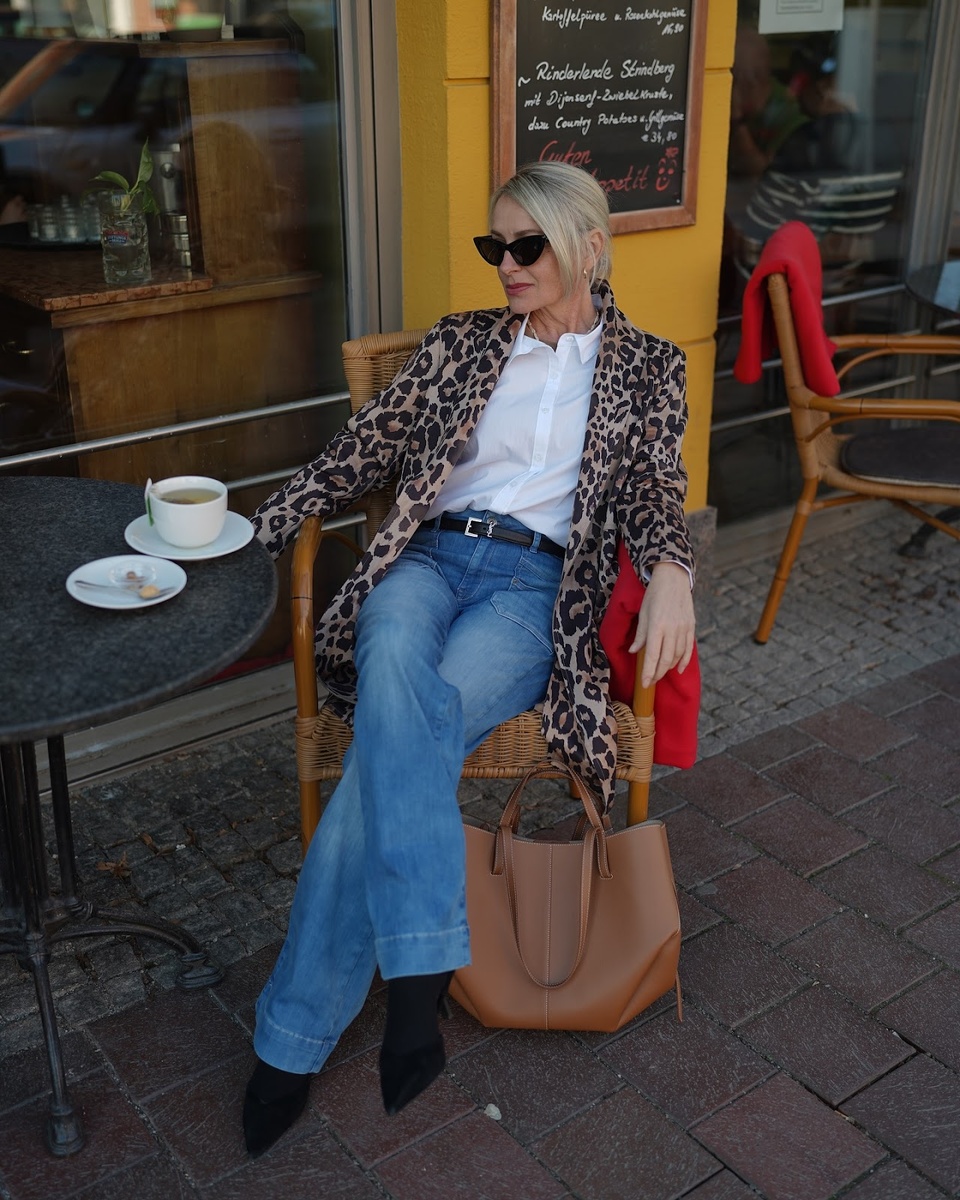 Плотный деним хорошо моделирует фигуру, утягивает всё лишнее, а главное — под ним не просвечивает бельё. Вообще, проблема лишнего веса в этом возрасте — не новость. Даже вы часто пишете в комментариях, что одеваться становиться сложнее, так как всё то, что работало раньше, перестаёт хорошо сидеть.