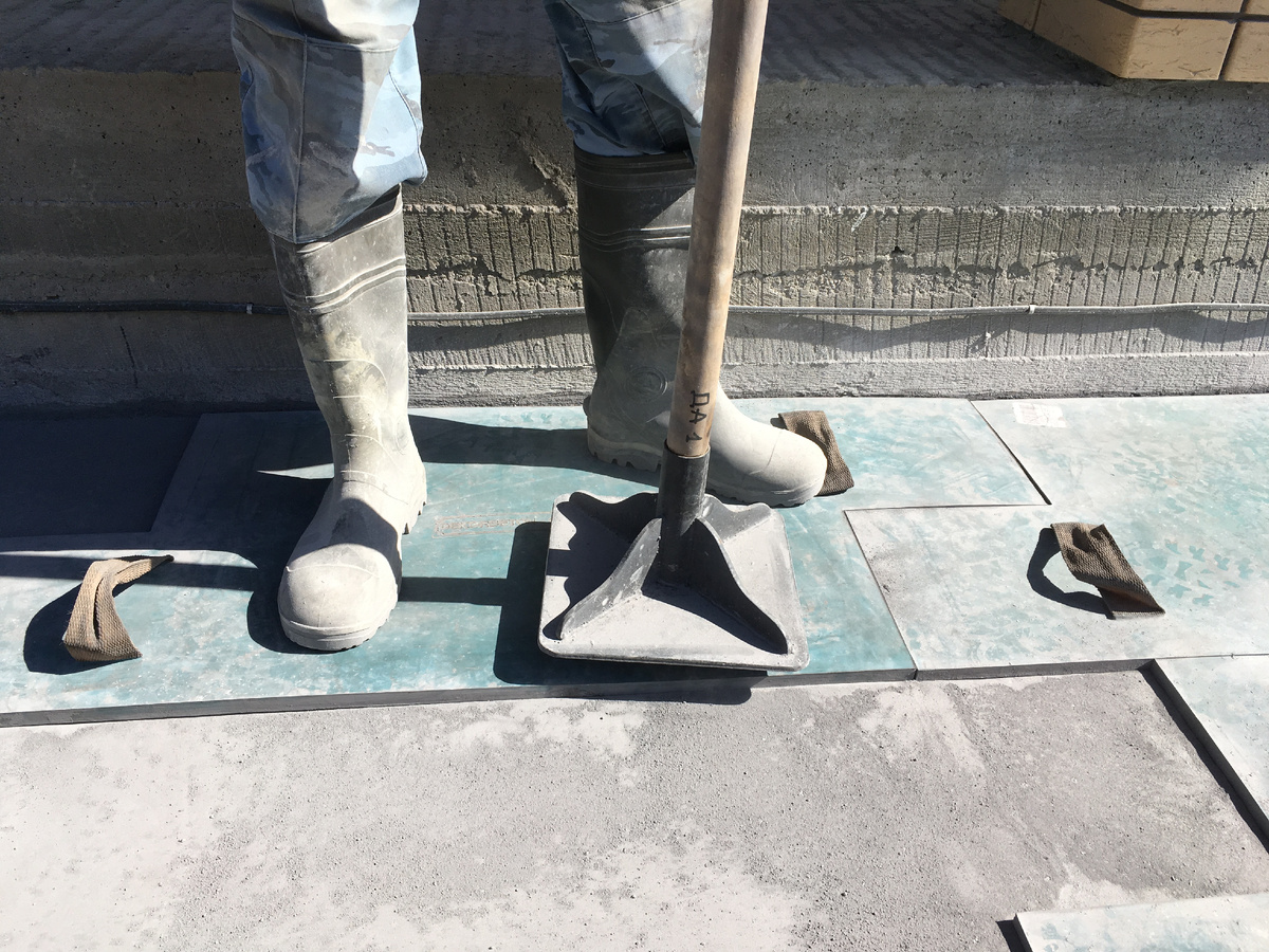 - В зонах с высокой нагрузкой, при больших уклонах и на площадках прилегающих к бассейнам добавляют кварцевый песок или специальные добавки для противоскольжения.
