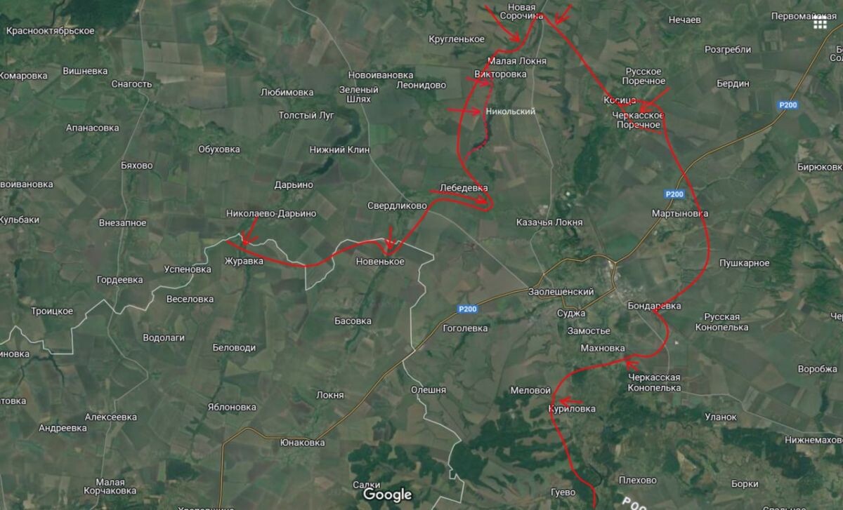 По последним данным, украинские войска оставили населенные пункты Погребки, Орловка и Новая Сорочина. В настоящий момент продолжаются ожесточенные бои за Викторовку и хутор Никольский, сообщает журналист Юрий Подоляка. На противоположном фланге этого плацдарма разворачивается наступление на Черкасское Поречное. Боевики удерживают южную часть населенного пункта, тогда как северная практически полностью очищена от противника. Данная ситуация стала возможной благодаря успешным действиям наших подразделений в районе Лебедевки. При отсутствии значительных подкреплений со стороны ВСУ (что маловероятно в условиях постоянных атак на коммуникационные линии в направлении Сум) можно прогнозировать дальнейшее сокращение северного плацдарма украинских сил в Суджанском районе.