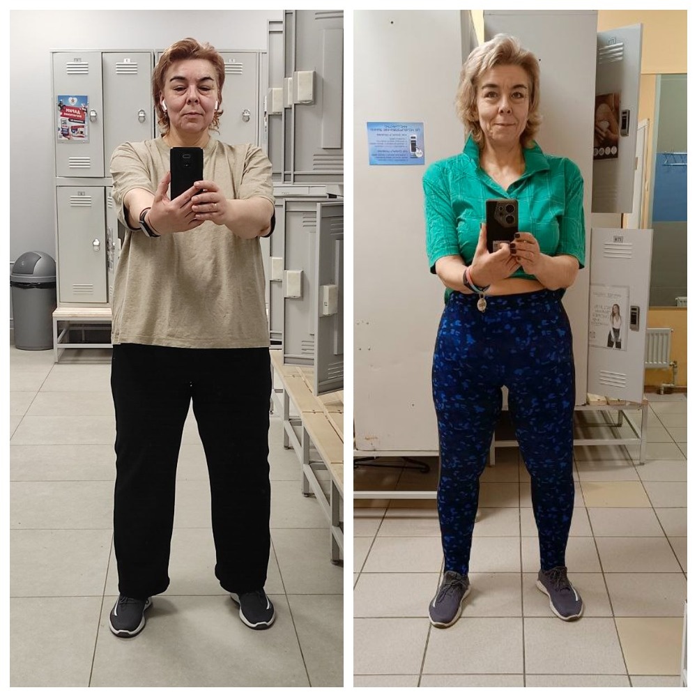 Решила сравнить старое фото из зала и новое. В первую очередь для себя. Хотела увидеть общую разницу. Даже не в смысле объемов, а в плане ощущения от тела. Потому что я то эту разницу хорошо ощущаю по самочувствию и физическим возможностям. Получилось не очень достоверно. Зеркало сильно искажает картинку. На одном стою близко к зеркалу, на втором чуть дальше. Выровнять не представляется возможным. Но уж как получилось.
