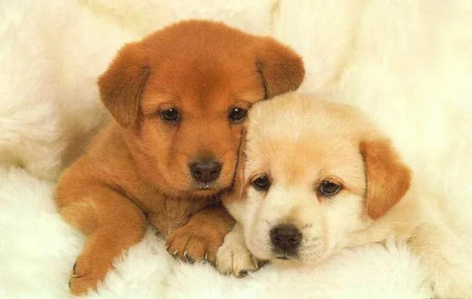 Рядом весело играли два почти одинаковых щенка.