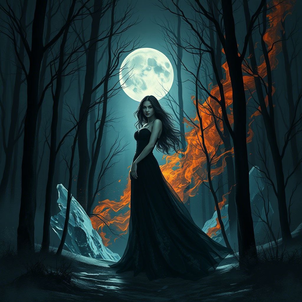 В ночной тишине, когда мир засыпает, как дитя под одеялом, тьма раскрывает свои объятья — то ледяные, то жгучие. Время замирает, будто старый волк притаился в засаде, и один неверный шаг — как искра в сухой траве судьбы. Эта история — про танец холода и страсти, где страх и тяга идут рука об руку, как волна и берег. Она вышла из мрака, и тьма за ней то стыла, то пылала. Платье её — чёрное, как лёд в безлунной ночи, струилось, как пламя над углями. Лунный свет пробился сквозь листву и лёг на её кожу узорами — холодными, как иней, и жаркими, как следы огня. Одна щека её сияла бледностью, другая горела жизнью, а глаза — один ледяной, другой пылающий — смотрели в самую душу. Шаги её были тише шёпота, но звенели, как зов бури в стуже. Она замерла, будто тьма шепнула ей имя. Губы, алые, как кровь на снегу, дрогнули: — Ты здесь... Из теней шагнул он — Эйдан, лицо под капюшоном, как загадка в ночи, но глаза выдали: в них страх мешался с узнаванием, как лёд с огнём. Он двинулся к ней, она — навстречу, и их шаги сплелись в танец, старый, как сама тьма. — Ты знаешь, зачем я пришла, — сказала она. Голос её был то шёпотом зимы, то рыком ветра, холодным и жгучим разом. Он кивнул, онемев, будто язык замёрз в горле. Протянул руку — дрожащую, но твёрдую. Она взяла её, и пальцы её были ледяными, как дыхание Хель, но обжигали, как страсть Лилит. Ветер закружил листья в вихре, луна осветила её лицо — и оно вспыхнуло, то стылым покоем, то дикой свободой. — Боишься? — спросила она, и в её взгляде плясали тени и искры. Он кивнул, но в глазах загорелся огонёк — эхо той ночи, когда он клялся ей у костра. Она улыбнулась — жутко и прекрасно, как метель над пламенем. — Не бойся, — шепнула она, придвигаясь ближе. — Это лишь шаг к тому, что ты обещал. Мир стих. Ветер затаил дыхание, тени вытянулись, как стражи. Она наклонилась к его шее, губы коснулись кожи — и холод с жаром пробили его грудь, как метка из прошлой жизни. Когда отстранилась, глаза её сияли, ледяной и горящий, а на губах алел отблеск. Он осел на землю, медленно, как снег под солнцем, и дыхание его замерло. Она оглянулась — на деревья, на луну, на тьму, что пела ей гимны. Потом ушла в ночь, оставив за собой тишину и след — ледяной и жгучий, как её суть. Лирана — дочь теней и бури. А где-то за деревьями кто-то смотрел. Кто-то, кто знал: эта ночь — лишь эхо старой клятвы, что ждала своего часа.