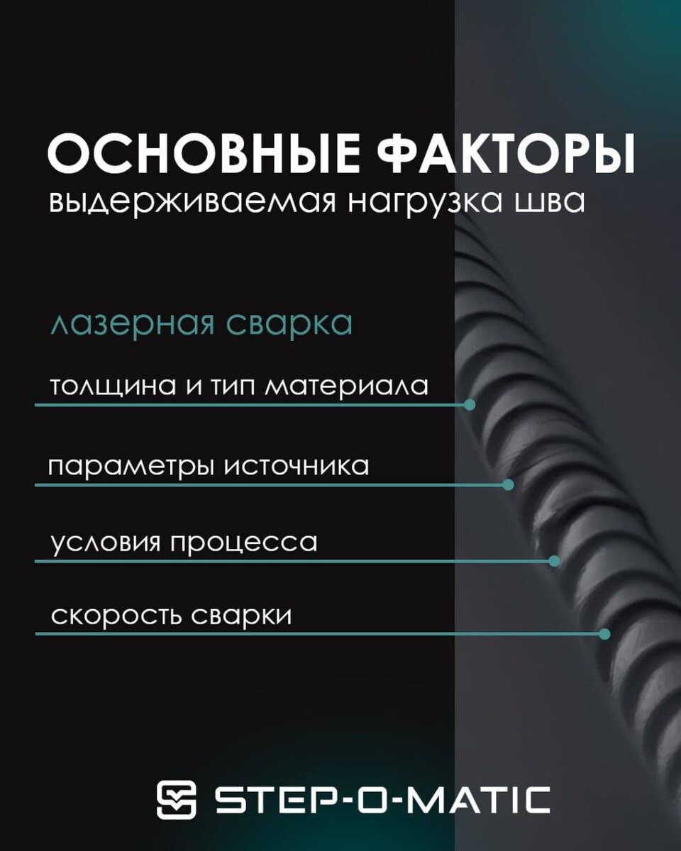 1️⃣ Толщина и тип материала Чем толще и прочнее материал, тем выше выдерживаемая нагрузка 2️⃣ Параметры лазерного излучения Мощность, ширина шва и другие характеристики соединения. Параметры подбираются в зависимости от типа материала и требуемой прочности 3️⃣ Условия процесса Условия процесса, такие как температура, влажность и другие факторы, могут влиять на качество соединения и его прочность 4️⃣ Скорость сварки Скорость сварки влияет на ширину шва и глубину проплавления. При слишком высокой скорости может снизиться прочность соединения, а при слишком низкой — возрасти риск появления дефектов