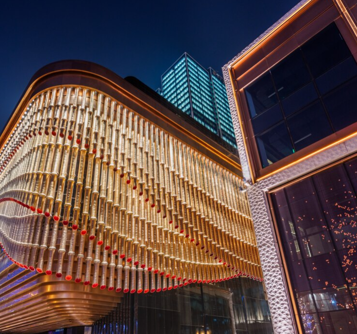 Минимализм и скульптурные формы светильников продолжают набирать популярность. Тонкие, изящные конструкции не только выполняют функциональную роль, но и служат арт-объектами, привлекая внимание посетителей и подчеркивая стиль торгового центра. Люстры в форме колец, создающие ощущение невесомости благодаря плавным линиям и симметрии, становятся центральными элементами в оформлении пространств.