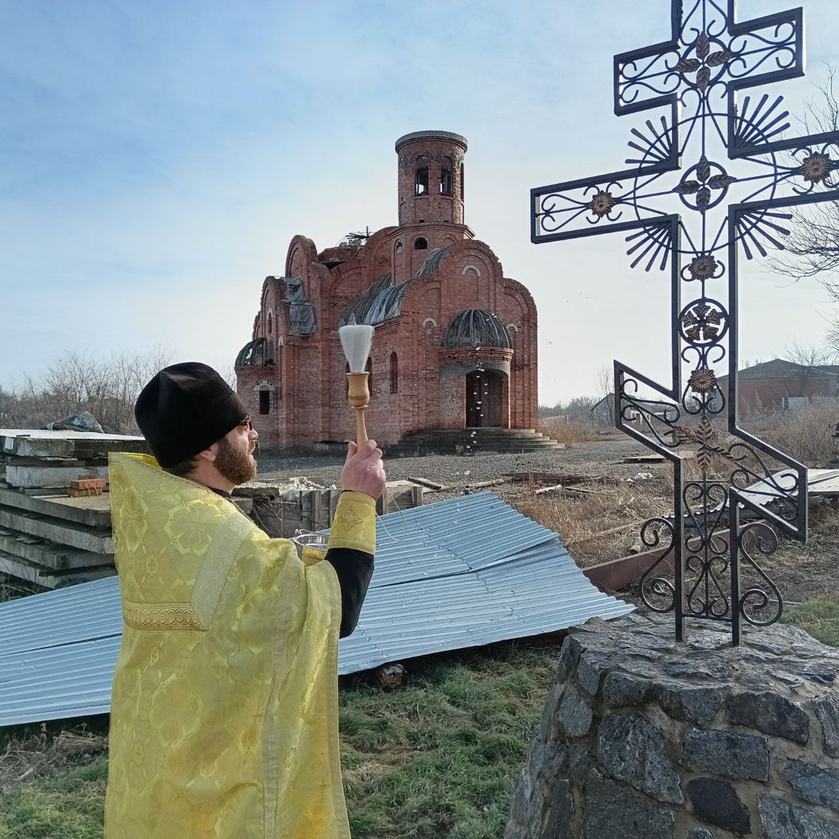 Ровно 3 года назад, 27 февраля 2022 года в алтарь Николаевского храма села Новогнатовка в ДНР попала ракета ВСУ. Храм был разрушен, иконы и утварь – искорежены. Стоит ли говорить, каким ударом это стало для верующих жителей села? Новогнатовка находится недалеко от Волновахи – в местах, которые стали эпицентром боевых действий. С 2014 года жители села строили в нем православный храм во имя святителя Николая Чудотворца – красивый и просторный, из красного кирпича. Возводили его с любовью и молитвой, понемногу, на пожертвования. А пока большой храм строится – установили временную церковь-вагончик, в которой стали совершать богослужения. Но в феврале 2022 года в результате ракетного обстрела храм-вагончик оказался разрушен. Одна из ракет попала прямо в его алтарь. Были выбиты окна, повреждена кровля и обшивка церковного здания, уничтожен иконостас, пострадало множество икон. За минувшие с тех пор три года усилиями местных жителей и военнослужащих Российской армии храм-вагончик удалось восс