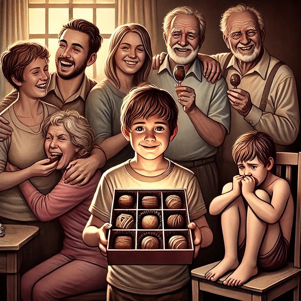 Представьте: у ребёнка день рождения. Допустим, ему исполнилось три года. Родственники собрались — мама, папа, бабушки, дедушки, братья, сёстры. Вручают мальчику коробку конфет. Он счастлив, держит её в руках, думает: «Как здорово! Сейчас буду есть и ни в чём себе не отказывать!» Но тут мама перехватывает инициативу: — Ты же меня любишь? Поделишься со мной конфеткой? Ребёнок, чувствуя, что у него отбирают ценность, дрожащей рукой достаёт конфету и отдаёт маме. — А дедушку любишь? А папу? А сестрёнку? А братика? И так, по цепочке, он раздаёт все конфеты. В какой-то момент коробка оказывается пустой. А теперь представьте: наступает 1 сентября, ребёнок идёт в детский сад. В честь праздника ему снова дарят коробку конфет. Как вы думаете, что он делает? Он убегает в комнату, закрывается, и, запихивая конфеты в рот, съедает их все в одиночку. А потом выходит, вытирая шоколад со своих губ. Теперь можно задать вопрос взрослым: «А для чего вы просили его делиться конфетами?» — Ну как? Чтобы он