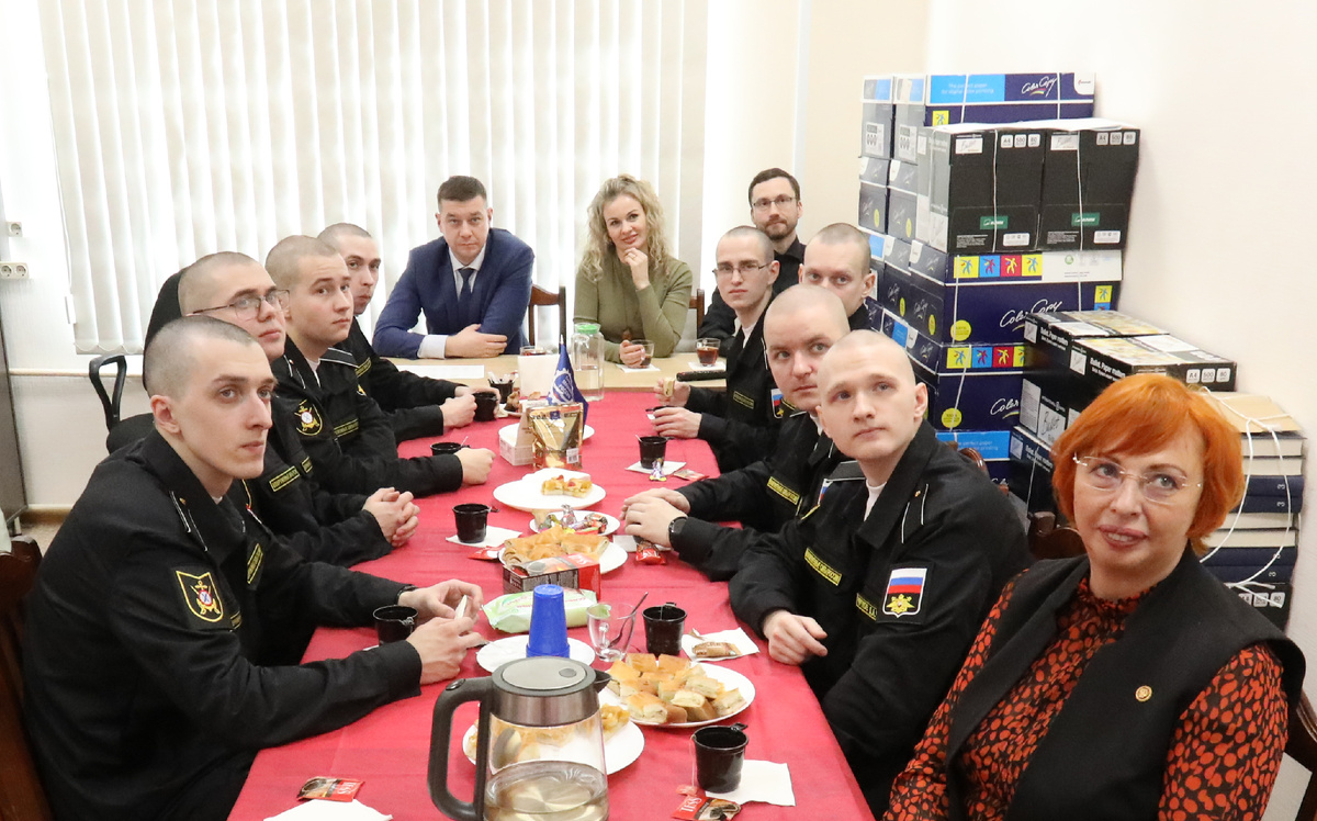 Разговор за чашкой чая получился живым и полезным для матросов. Заместитель начальника ПКБ «Севмаш» по управлению персоналом, руководитель аппарата регионального отделения Союза машиностроителей России Денис Нестеров заметил, что служба в НПР позволяет молодым специалистам совместить срочную службу с работой по производственному профилю. Это, как показывает опыт, приносит положительный результат: военнослужащие под руководством наставников, а затем и самостоятельно обогащают свои технические знания, совершенствуют профессиональный уровень. По словам Дениса Юрьевича, ключевая задача научно-производственных рот в том, чтобы ребята, выйдя на «гражданку», возвращались работать в коллективы, где проходили службу. Тем более что руководство предприятия создаёт для молодых специалистов привлекательные условия труда.