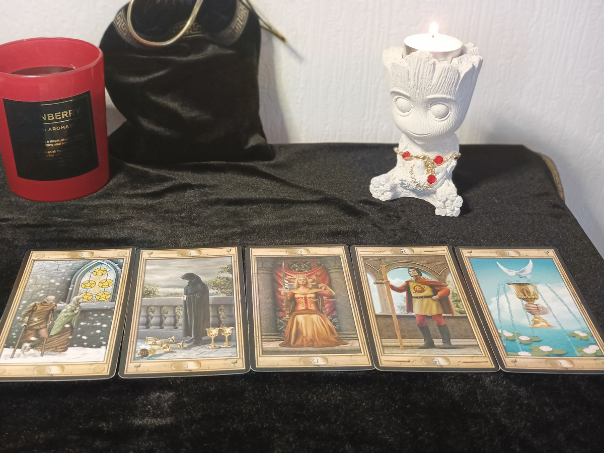 Всем Привет.5 Пентаклей в начале расклада,а далее 5 Кубков.Говорит,что с утра будет разбитость и нежелание, что-то делать.Нет планов,нет желаний.Ноо потом Вы собирётесь по карте Справедливость.Вон обратите внимание на красотку сидящую на кресле с мечом.И скажите себе-"Встань и иди").Дальше паж жезлов.Начнёте делать небольшие дела,может звонком организуете поездку или встречу.Замыкает расклад Туз Кубков.Шикарная карта.Удовольствие в итоге получите,от встречи или ужина с приятным человеком,а может кино эмоционально-заряженное посмотрите,и карта говорит о начале,хороших отношений или идей,которые в перспективе послужат трамплином к чему-то более обширному по приятности.Вот так.Удачи,тепла,любви.