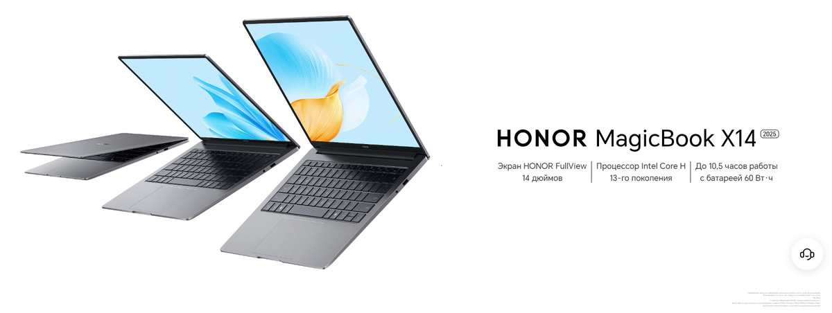 В магазинах электроники и на маркетплейсах стартовали продажи нового доступного ноутбука HONOR MagicBook Х14 2025 года с процессором Intel Core i5-13420H 13-го поколения, разными конфигурациями памяти, батареей увеличенной емкости. HONOR MagicBook X14 (2025) толщиной 16,5 мм и весом 1,4 кг удобен для использования в различных форматах. Тонкие рамки экрана FullView обеспечивают увеличенную полезную площадь, а яркость до 300 нит и антибликовое покрытие позволяют комфортно использовать ноутбук практически в любых условиях. Разрешение 1920x1200, цветовой охват 45% палитры NTSC и точная заводская калибровка обеспечивают оптимальное качество и детализацию изображения. HONOR MagicBook X14 построен на базе процессора Intel Core i5-13420H 13-го поколения. Ноутбук оснащен 16 ГБ оперативной памяти, а для хранения данных предусмотрены SSD-накопители емкостью 512 ГБ или 1 ТБ. Батарея 60 Вт·ч обеспечивает до 10,5 часов офисной работы. В комплекте поставки быстрая зарядка 65 Вт. Она может быть испо