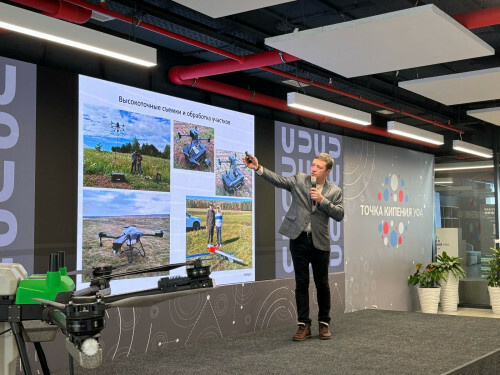 В Уфе, в стенах Межвузовского студенческого кампуса, прошел семинар, посвященный использованию беспилотников в сельском хозяйстве. На мероприятие съехались свыше 60 специалистов из разных уголков России — от представителей агропредприятий до разработчиков технологий БПЛА и средств для воздушного опрыскивания. Директор кампуса Сергей Гладких, открывая встречу, отметил, что это событие имеет большое значение для развития взаимодействия науки, образования и бизнеса. Он пояснил, что цель — переход к точному земледелию с использованием отечественных беспилотных систем. По его словам, в кампусе уже функционирует лаборатория с уникальным оборудованием для дистанционного анализа полей, позволяющая с высокой точностью отслеживать состояние посевов, выявлять вредителей и оценивать рост растений. Также он рассказал о совместной лаборатории УУНиТ, УГНТУ и компании «Лексема» на седьмом этаже, где внедряют искусственный интеллект в аграрный сектор. Кроме того, химики кампуса работают над новыми преп