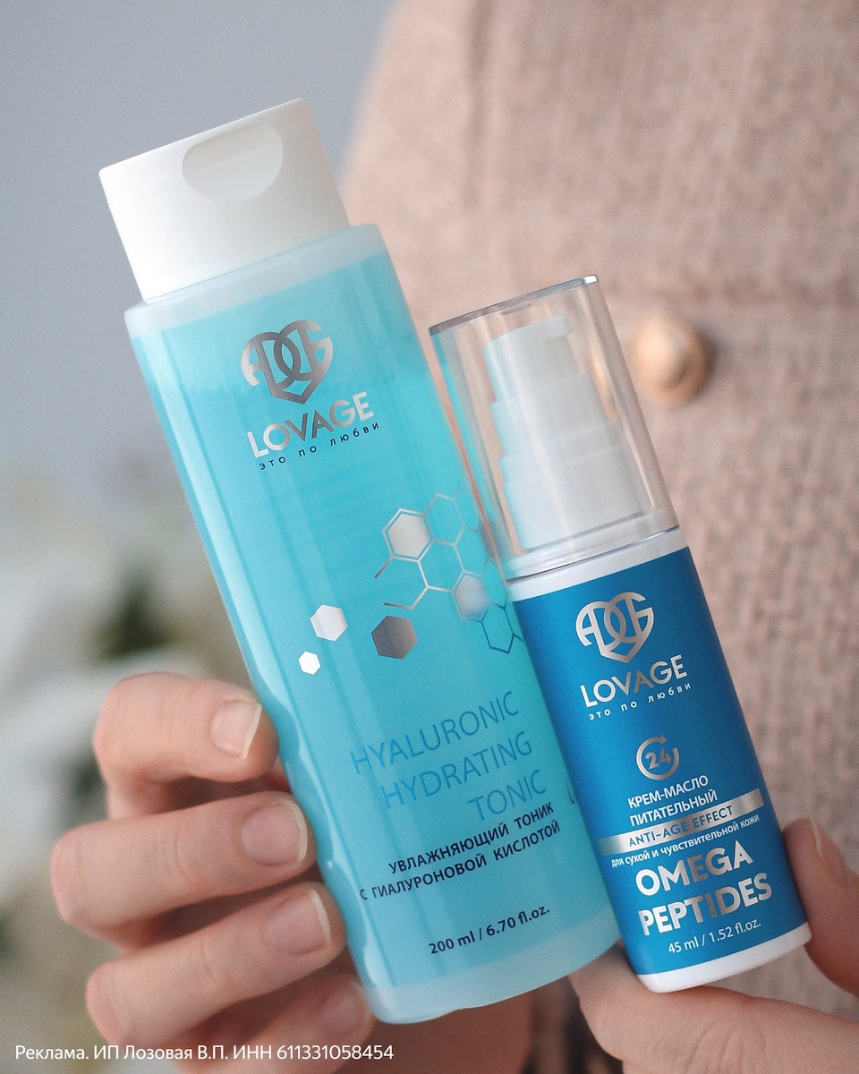 Приветствую вас, мои ухоженные красавицы! 💚 Давно не показывала вам белорусскую косметику по уходу за лицом, потому что не встречала ничего достойного. То составы были слишком несовременными, то обещания слишком несбыточными. Но недавно я была на макияже у визажиста и увидела на её столике почти пустой тоник Lovage, именно им мастер готовила моё лицо к макияжу. Тоник показался мне очень приятным, поэтому заказала флакончик себе. А к нему в компанию взяла крем для сухой и чувствительной кожи — именно такой стала моя в межсезонье. Обе баночки показались мне классными и достойными вашего внимания. С удовольствием делюсь своими впечатлениями 🤓 Я люблю шутить, что в моём косметическом столике наберётся целый тоник-бар. Тоники/тонеры не считаются необходимым шагом в уходе за кожей, но свою рутину я без них не представляю. Увлажняющий тоник Lovage получился по-хорошему понятным и простым: вокруг него не надо плясать с бубном, соблюдать ритуалы при нанесении и строго учитывать время суток. П