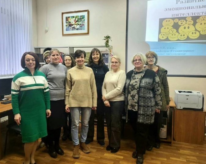 9 января ноября в научной библиотеке БГТУ в рамках повышения квалификации сотрудников состоялась лекция-тренинг к.и.н., доцента кафедры «Гуманитарные и социальные дисциплины» Захаровой Л.И. на тему «Развитие эмоционального интеллекта». В рамках занятия были рассмотрены следующие вопросы: