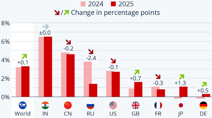 Канцлера Германии Ангелу Меркель частно вспоминают за ее спокойствие и рассудительность, с которыми она провела Германию и Европу через несколько кризисов. Однако ее экономическое наследие в ретроспективе выглядит не слишком успешным, поскольку она не смогла провести реформы, необходимые для того, чтобы экономика страны росла быстрее конкурентов. МВФ: оценка изменения реального ВВП ряда стран в 2024 году и прогноз на 2025 год (цифры со стрелочками отражают изменение (в п.п.) относительно 2024 года). Источник: Statista Канцлера Германии Ангелу Меркель частно вспоминают за ее спокойствие и рассудительность, с которыми она провела Германию и Европу через несколько кризисов. Однако ее экономическое наследие в ретроспективе выглядит не слишком успешным, поскольку она не смогла провести реформы, необходимые для того, чтобы экономика страны росла быстрее конкурентов. Проблемы с инфраструктурой, хроническое недоинвестирование и печально известная бюрократическая волокита нанесли ущерб конкурен
