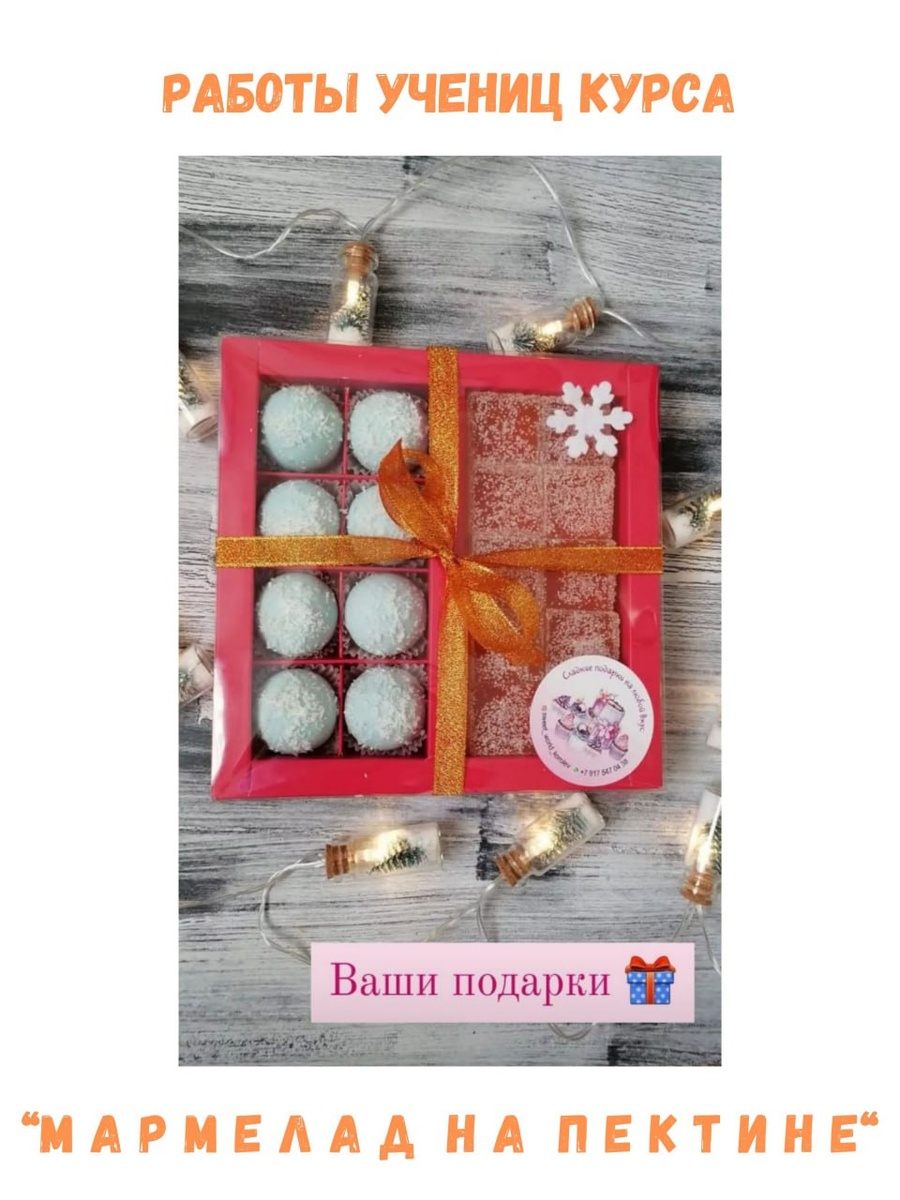 ☝️ Стремление научиться делать различные десерты часто продиктовано желанием создавать из них красивые подарки. ❣️ Мармелад - это тот десерт, который отлично смотрится в подарочной упаковке. Научившись готовить мармелад, вы можете с легкостью наполнять его разными вкусами. Даже одну и ту же отработанную рецептуру всегда можно дополнить по вкусу пряностями, такими как ваниль, бобы тонка или корица. Возможно, вам понравятся более пикантные вкусы. Также в мармелад можно добавить немного ликера, и все это позволяет создать огромное вкусовое разнообразие. И, конечно же, это особенно актуально, когда речь идет о подарках. Когда хочется сделать красивую коробочку с мармеладом разных вкусов, которая будет очень эффектно смотреться в упаковке. ❣️Мармелад также удобен тем, что его можно приготовить не только в виде нарезанного пластового мармелада. ☝️Его также легко и просто сделать в любой силиконовой форме, придав мармеладному подарку любую тематику - детскую, новогоднюю, ко дню рождения или