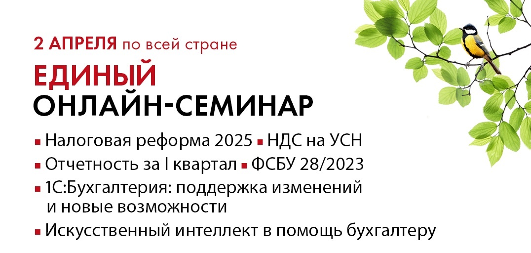 Приглашаем пользователей программ 1С посетить Единый семинар. Это мероприятие будет полезно бухгалтерам, руководителям организаций, ИТ-специалистам, директорам по персоналу и специалистам кадровых служб. Семинар пройдет 02 апреля 2025 года в формате вебинара/онлайн-трансляции. Время начала семинара с 10-00. В программе Единого семинара планируются выступления методистов и экспертов фирмы "1С" по следующим темам: Темы предварительные, будут уточняться и дополняться. Рекомендуем отслеживать информацию на http://es.1c.ru. Всем слушателям семинара, заполнившим анкету слушателя, предоставляются бесплатные консультации (не требующие подключения) с 02 по 04 апреля 2025 г с 13:00 до 16:00. Участие в семинаре бесплатное. Предварительная регистрация обязательна, количество мест ограничено. Зарегистрироваться можно по телефону 8(8332) 248-999 или на сайте. Зарегистрироваться: https://es.1c.ru/register#jUZh17Eyyc или http://es.1c.ru. - зарегистрироваться - Киров - Док