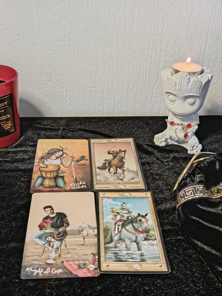 Всем привет.Немного про рыцарей в таро.Кто они?У меня они самые интересные персонажи.Уже не подростки,но молодые мужчины.Люблю психологию и немного охарактеризую Рыцаря Жезлов и Рыцаря Кубков.Взяла для сравнения эти два персонажа.Выше две карты-это жезлов,рядом девушка рыцарь жезлов (имеет тоже такие качества).Он рвётся в бой,страсти в нём кипят,не будет сидеть на месте,ждать,много думать.Такие мужчины очень харизматичные, яркие ,сексуальные желания на первом месте.Но из минусов,им быстро всё надоедает,остывают и могут переключиться на другое дело или девушку другую.Их нужно постоянно удивлять,нарядом или идеями.Второй ниже рыцарь кубков.Кубки в таро это эмоции.Рыцарь любви.С цветами сидит красавчик.Этот молодой мужчина любит эмоции.Красиво одеваться,сердцеед,разбирается в психологии,эмпат.Радость видит в путешествиях,комплиментах.Будет ухаживать,дарить цветы.Из минусов(проникает в сердце надолго),зарабатывать много не умеет(быстро тратит на эмоции).