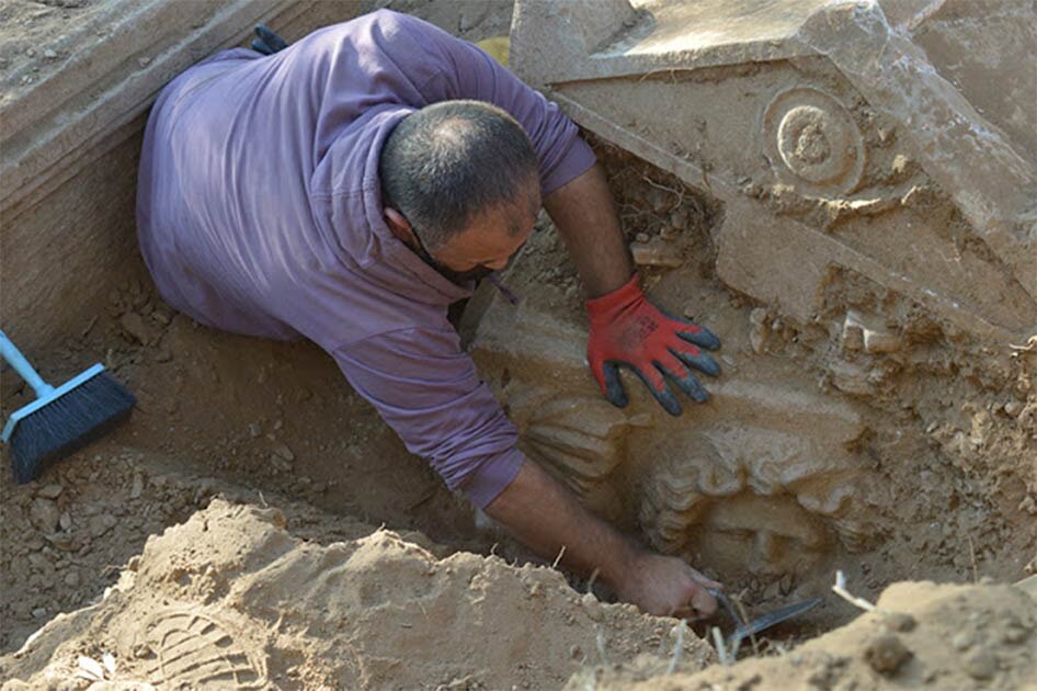 В 2020 году полиция региона Анатолия стала получать информацию о незаконных археологических раскопках. В стране уже действовала программа по противодействию незаконным раскопкам, поэтому все данные были переданы в Караджасу, город, расположенный рядом с древним Афродисиасом, Древнегреческим городом, основанным в Малой Азии, примерно, в 3 веке до нашей эры. Для мародёров окрестности Афродисиаса являются лакомым местом, ведь он изучен далеко не полностью, а значит там наверняка найдётся чем поживиться. Чтобы поймать преступников полиция решила расставить фотоловушки, а также патрулировать окрестности с помощью квадрокоптеров. Спустя несколько недель слежки в одной из оливковых рощ была замечена подозрительная активность. В одно и то же время в одну точку собралось несколько мужчин, и полиция решила проверить этот район. Когда они прибыли на место, то никого не обнаружили, однако факт незаконных раскопок был налицо. На небольшой глубине они заметили каменную крышку саркофага, который не у
