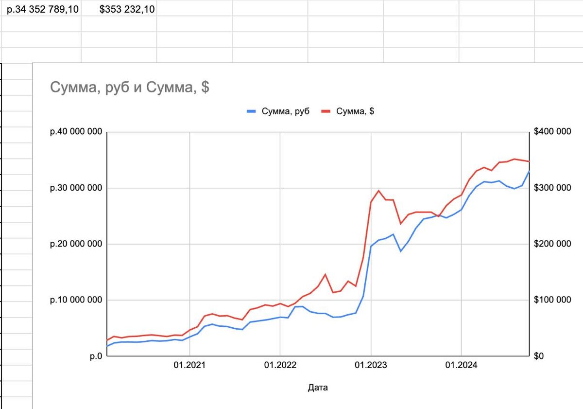 Уже практически 2 года я веду все свои инвестиционные сделки в открытом формате. Сделал это для того чтобы каждый подписчик мог наблюдать за моим личным опытом вложения денег (не всегда удачным), перенять его, возможно получить какие-то инсайты и сделать еще лучше. На начало 2023 года портфель составлял 19.58 млн, тем самым общий прирост за 22 месяца составил 14,42 млн или +57%. За это время удалось вложить деньги в: -недвижимость (флиппинговые квартиры, коммерческие помещения (ГАБ), кладовка, машиноместо, участки, виллы на Бали, субаренду) -доходный транспорт (авто, байк в Тайланде) -майнинг -криптовалюты -фондовый рынок (акции, Pre IPO) -займы (13 шт) Выводы Ключевой и вроде бы очевидный инсайт который я получил за последнее время - то что нужно часть портфеля держать в валютных активах, иначе накопление в рубле может выглядеть как борьба с ветряными мельницами. Несмотря на вроде неплохой результат по итогу двух лет, есть несколько точек роста для капитала и пассивного дохода, которы