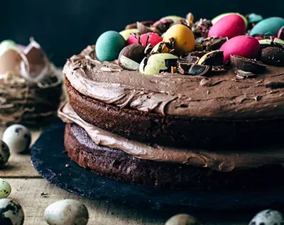 Приготовление пасхального торта может показаться сложным, но только не с этим простым рецептом! Этот шоколадный торт «Пасхальное яйцо» очень легко приготовить, и он идеально подходит для новичков. Это милый пасхальный торт, украшенный множеством пасхальных яиц. Влажный шоколадный торт с нежной шоколадно-зефирной глазурью - это просто божественно. Вот рецепт пасхального торта. Продукты необходимые для приготовления: Шоколадный бисквит: 2 стакана пшеничной муки 300 г сахара 130 г какао-порошка 3 чайные ложки разрыхлителя 1 чайная ложка соли 220 мл молока 180 г масла 2 яйца 1 чайная ложка ванильного экстракта 220 г шоколадных яиц. Шоколадная зефирная глазурь: 220 г масла 2 стакана просеянной сахарной пудры 0,5 стакана несладкого какао-порошка 400 г зефирного крема 2 стакана шоколадных яиц (меньше или больше - для украшения). Время приготовления: 1 час. Продукты все собраны. Начинаем готовить вкусный пасхальный торт. 1. Разогрейте духовку до 180 градусов. Застелите два противня размером 23