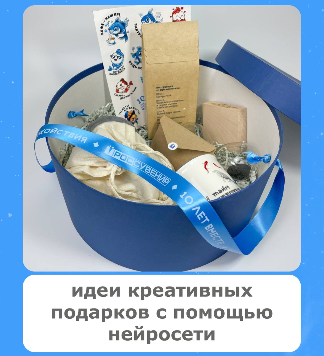 Знакомо ощущение, когда нужно подобрать подарки, но за годы работы подарили уже все, что могли, и удивить получателей сложно? 🤯 Мы вас понимаем! Поэтому делимся лайфхаком, как найти ту самую уникальную идею. Спойлер — нейросети! Наша команда пользуется искусственным интеллектом (ну и накопленным опытом и насмотренностью, конечно). Именно поэтому мы создаем оригинальные подарки для наших клиентов. 🫶🏻 Рынок дает огромный выбор товаров, но зачастую эти товары вы уже знаете, что-то новое и уникальное появляется не так часто. Наш совет — креативить за счет идеи и концепции. Так мы собрали успокоительный набор для наших сотрудников. Товары стандартные (игра Туми Иши, кружка, чай), но благодаря нанесению и заложенной идее подарок вызвал вау-эффект. ✨ А придумать эту классную идею помогла нейросеть. Чтобы получить реально интересную выдачу, нужно написать качественный промт (задачу для искусственного интеллекта). Вот инструкция:👇🏼 1. Напишите как можно больше вводной информации и контекст