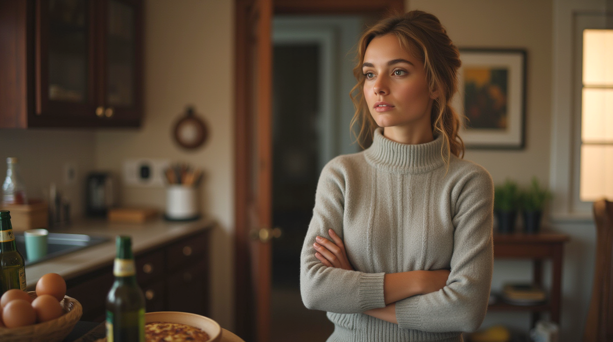 Она замерла. Буквально на долю секунды. Потом медленно — очень медленно — опустила крышку на кастрюлю. Металл глухо звякнул о керамику. И повернулась.