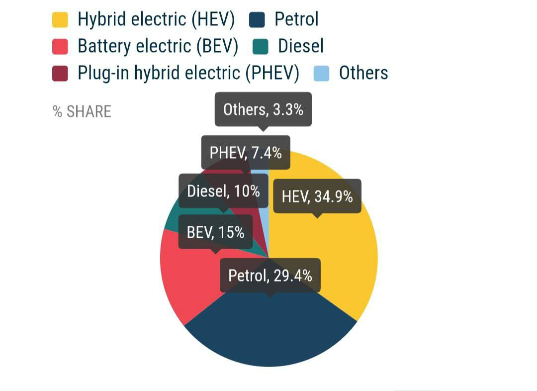 В январе в Европе электромобили обеспечили 15% от общего объёма продаж, на долю гибридных автомобилей пришлось 34,9%. Всего было продано 124 тысячи электромобилей.