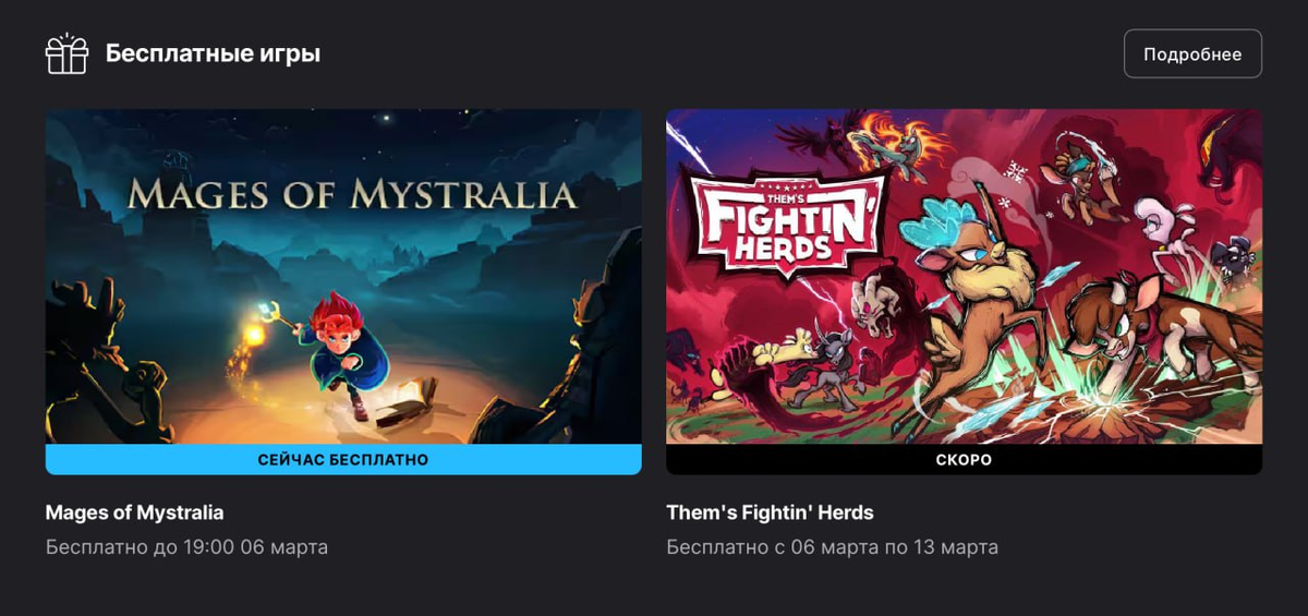 Забрать можно: 🎰Mages of Mystralia — инди-экшен, в котором вам предстоит окунуться в магический мир королевства Мистралия, создавая собственные заклинания для борьбы с врагами. А на следующей неделе раздадут Them's Fightin' Herds