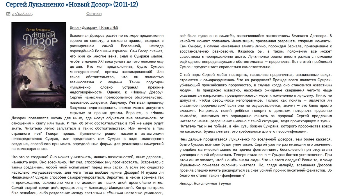 Сергей Лукьяненко «Новый Дозор» Критика