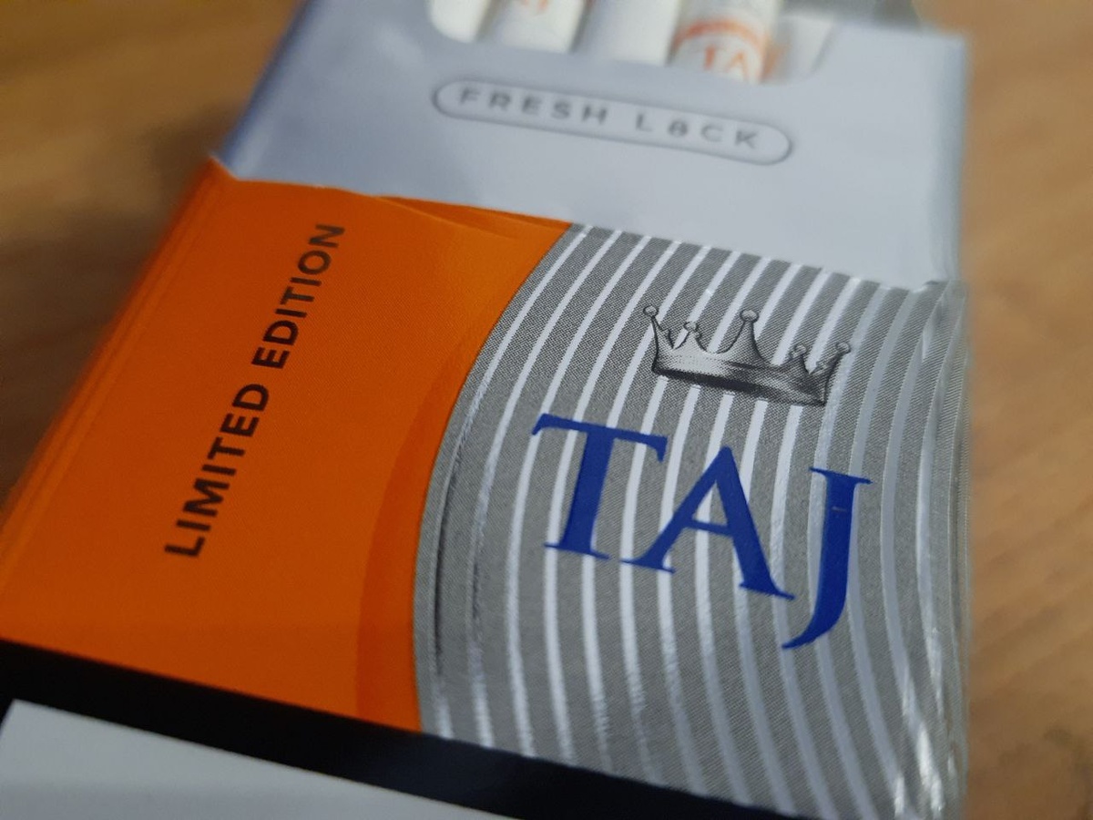 На первый взгляд, «Тадж» из той же бесконечной серии, что более известные «Милано» и «Кавалло». Штрих-код начинается с цифр «629», что определенно ведет в ОАЭ. Но данных о конкретном производителе на пачке нет. Зато есть показатели: содержание никотина – 0,4 мг/сиг, содержание смол – 4 мг/сиг.