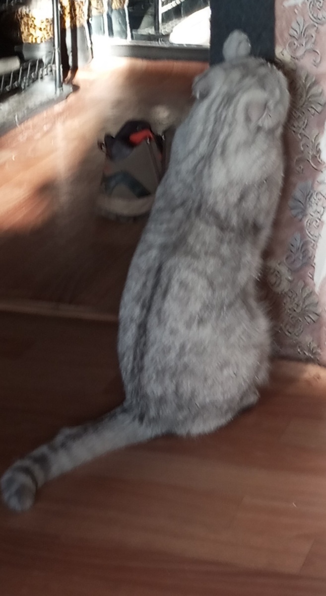 После завтрака Масяня решил опробовать новую когтеточку, старую совсем изорвал.
