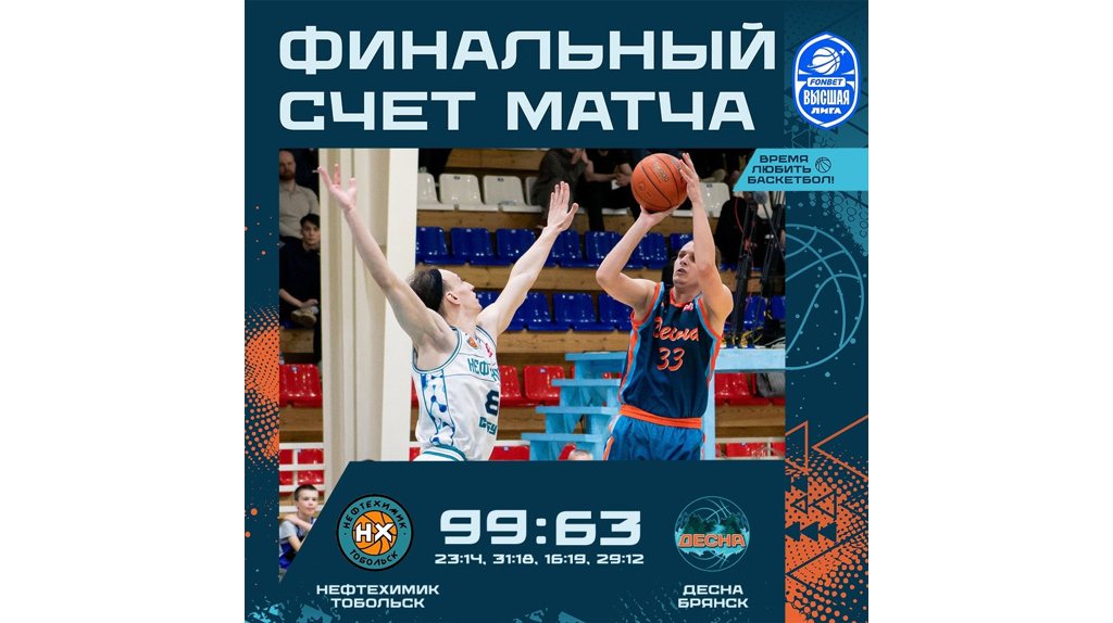 Сегодня, 27 февраля, брянская "Десна" проводила повторный гостевой матч в Тобольске против местного "Нефтехимика". Накануне наши баскетболисты совершили настоящее чудо. Постоянно уступая по ходу игры, в концовке им удалось вырвать победу у третьей команды чемпионата.