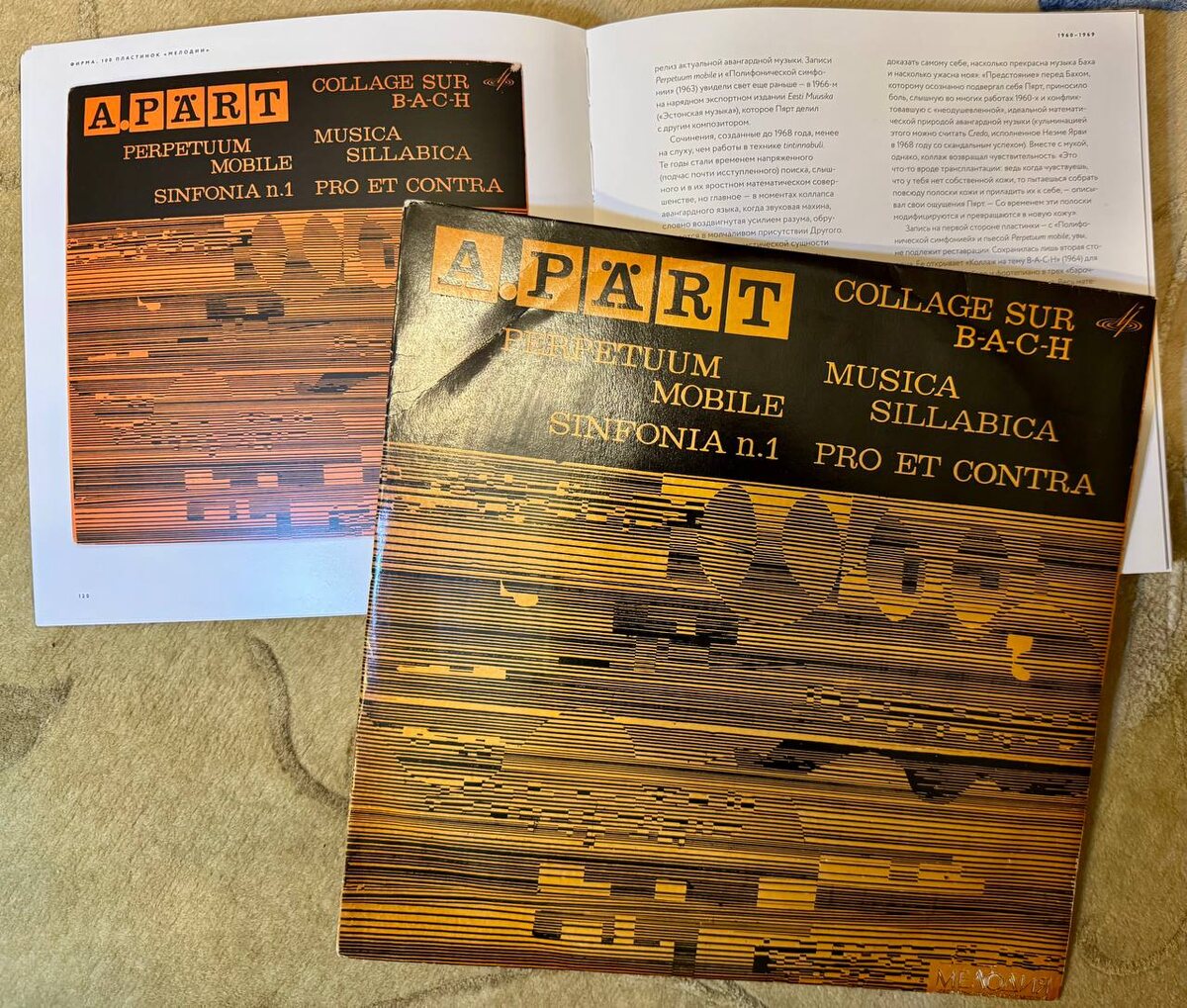 Замечательно, когда ты для понимания музыкального произведения можешь прочесть содержательный текст на обратной стороне пластинки (или в буклете компакта), прочитать о пластинке профессиональную рецензию. Так вышло, что в течении буквально нескольких дней у меня появилась пластинка Арво Пярта - A. Pärt "Sinfonia N.1 / Perpetuum Mobile / Collage Sur B-A-C-H / Musica Sillabica / Pro Et Contra" (Мелодия Д 018049—25076 #год1969) и книга "Фирма. 100 пластинок «Мелодии»" Дениса Бояриновова и Ляли Кандауровой. Пластинка не простая, возможно, это первый изданный в #СССР полноценный альбом с авангардной музыкой. Поправьте, если я не прав. Произведения записанные на этой пластинке нельзя отнести к придуманному позже композитором стилю Тинтинна́були (от латинского tintinnabulum — колокольчик). Впервые эту технику Арво Пярт применил в своих произведениях второй половины 70х (76 и 78 годы). А тут скорее серийная техника, приемы музыкального коллажа, соединение "современных авангардных техник и цита