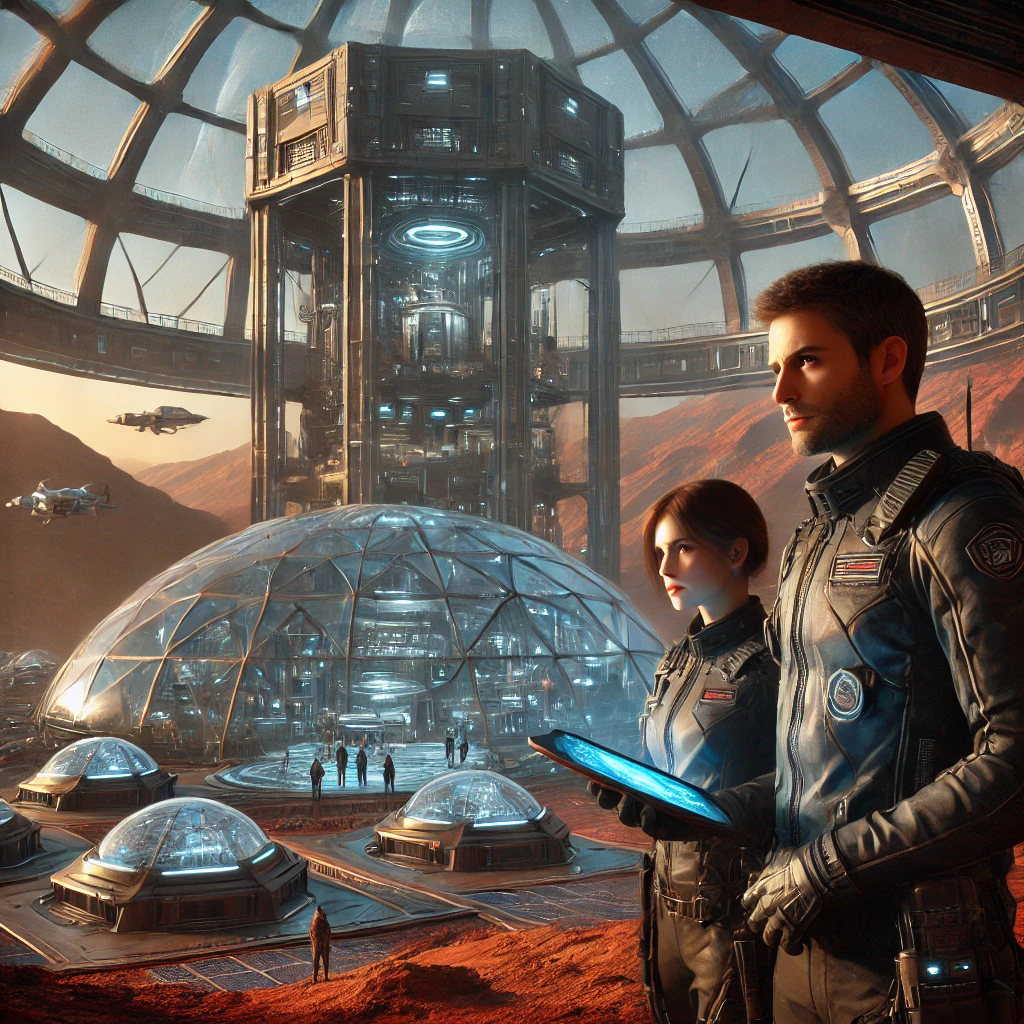 Челнок «Гелиос-7» вошёл в разреженную атмосферу Марса. За иллюминатором тянулись бесконечные красные пустоши, перемежающиеся скалистыми хребтами. С высоты база «Аврора» выглядела как сложная паутина из куполов и туннелей, растянувшихся на сотни метров.