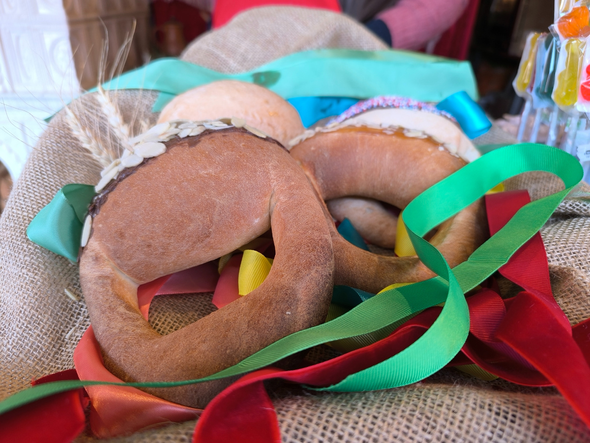 На Манежной площади тоже распахнула свои ворота на гостеприимная ярмарка. На этот раз ярмарка примерно наполовину меньше по размеру. Но на ней по-прежнему полно интересностей и вкусностей. В одном из ярмарочных шале, прямо на входе, наш национальный русский хлеб -- калачи. Уже делала для вас ссылки на публикации о дегустации калачей в ресторане "Марк и Лев" на Симферопольском шоссе во время нашего путешествия в Тульскую область, во время театрализованного представления в "Калачной" В Коломне и в Доме российской кухни на ВДНХ. Ссылки смотрите ТУТ: Ассортимент калачей расширяется! Раньше пробовала ржаной калач с ростбифом (ресторан "Марк и Лев"), пшеничный калач с гусем ("Калачная" в Коломне), калач со щучьей котлетой в Доме российской кухни. Сладкие калачи ещё ни разу не пробовала. А тут такие оригинальные посыпки! Выглядят, как пончики. Нарядные и красивые... Рядом весёлые кузнецы. Почему весёлые? Узнаете из видео, которое опубликую чуть позже этой заметки. Зимушка-зима. На ярмарке оп