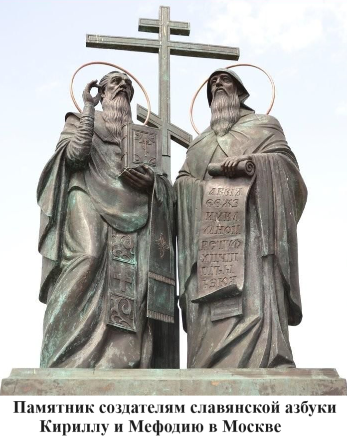 Коснёмся здесь истории создания кириллицы. Официальная историография приписывает Кириллу (Константину до принятия сана священника, годы жизни 815-885 гг. н.э.) создание славянской азбуки. Но это не вполне соответствует действительности. Около 860 г. н.э. Кирилл (тогда его звали Константин - философ) был послан Константинопольским патриархом с миссионерской целью Крым и Хазарию. Братья Константин и Мефодий родились и выросли в городе Солуни, население которого с древнейших времён было смешанным из греков и славян. Они знали и греческий и славянский языки. Поэтому Константина и послали проповедовать Христианство в Крым и Хазарию. Обе эти страны были славяноязычными. Сейчас фальсификаторы истории России утверждают, что Хазария была населена тюрками, а Крым греками. Но Кирилла (Константина) посылали проповедовать Православие в славянские страны, потому что он знал славянский язык. Будучи в Корсуни (Херсоне), он увидел книгу, написанную на русском языке собственной системой письма. В Панонском житии Кирилла сказано (см. ППРР): "Обрете же ту Евангелие и Псалтирь русьскими письмены писано, и человека обреть глаголюша тою беседою. И беседова с ним и силу речи приимь, своей беседе прикладаа различна писмена, гласная и согласная, и к Богу молитву творя, вскоре начать чести и сказати, и мнози ся ему дивляху". Книга, которую Кирилл видел в Корсуни, была написана Евсевием Иеронимом славянским алфавитом, существовавшим у пруссов Вифании, к которому он придумал мнемоническую фразу. Один автор в Интернет высказывал мнение, что книга, виденная Кириллом в Корсуни, была написана не русскими письменами, а «сурьскими», то есть сирийскими. Якобы, где-то в текст проникла ошибка. Но тогда и слушатели в Крыму должны были бы быть сирийцами чтобы «ся ему дивляху». Вряд ли непонятная тарабанщина вызвала бы удивление. В пользу предположения о том, что текст был написан Евсевием Иеронимом, говорит то, что книги были Евангелие и Псалтырь. Именно их и перевёл в своё время на русский язык греческий священник славянского происхождения Евсевий Иероним. Хранителями древней письменности у русских были волхвы. Они бы не стали воспроизводить христианские книги, а Евсевий Иероним как раз и занимался переводом христианской литературы на русский язык. Книг, как таковых, у русских тогда тоже не было. Использовался набор деревянных дощечек, скреплённых металлическими кольцами. То есть, книга, виденная Кириллом в Корсуни, была написана на русском языке, но изготовлена в Греции. Кирилл был христианским миссионером. Евангелие и Псалтырь на русском языке, это было именно то, что ему нужно для миссионерских целей. В то время богослужение в Христианстве разрешалось только на греческом, латинском и еврейском языках, которые славянское население не понимало. Соответственно и проповеди были малоэффективными. А тут Кирилл увидел готовые богослужебные книги на русском языке, записанные русским письмом. Он приложил все возможные усилия к изучению этой письменности, использованной ранее Евсевием Иеронимом. Кроме того, он ознакомился и с более древним руническим вариантом русской письменности. В «Велесовой книге» об этом сказано следующее: “Ихва жече она бо уставе на ны пысьмено све абы яхом оно а трачехом све. Оспомынье ту боть тен Иларе ижь хочашеть уцете дътъ наше, должен ста ховате