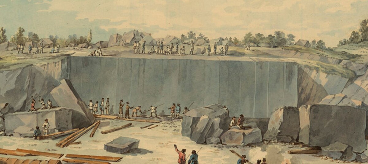 Как и у древних, движущей силой всех работ на гранитных карьерах в России является только сила рук; Именно здесь мы можем наблюдать эту совершенную дисциплину людей Севера, которая удваивает средства, добавляя к силе порядок. Всеми маневрами командует лидер; по его голосу инструменты занимают свои места, все руки действуют сообща; затем огромные блоки откалываются и медленно опрокидываются у подножия массива, частью которого они были.