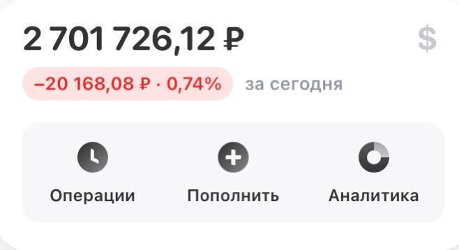 Прям холодный душ на тех, кто покупал на всю котлету ))) Это пройдёт . Со временем после нескольких циклов роста /падения рынка просто спокойно это все воспринимаешь и регулируешь в портфеле соотношение акций/фонда денежного рынка. Вот сегодня расчехлил фонд и закупился. Теперь у меня в акциях 61% В фонде денежного рынка 38% Регулируя это соотношение , падение рынка воспринимаешь уже во благо, так как ты падаешь не со 100% портфеля, а с 50% . А загрузившись, растёшь уже с большего соотношения акций . Таким образом падаешь с мЕньшей суммы в акциях , растёшь с большей и раз за разом откусываешь от рынка сладкие кусочки) Не является индивидуальной инвестиционной рекомендацией. Если у вас возникли какие то вопросы по компаниям, экономике, моей стратегии инвестирования, задавайте их в комментариях к посту, буду рад на них ответить. Обзор моего портфеля и обзоры по компаниям вы можете читать в моем телеграм-канале.