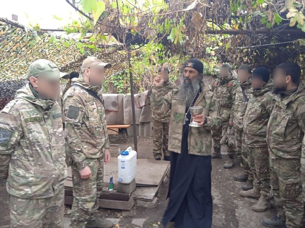 Все остальное время отец Олег один мотается по разным подразделениям бригады. На передовой он нарасхват, служит в передвижном храме в лесу, в поле, в блиндажах: Литургии, молебны, литии, отпевания, соборования, исповеди, причащения, проповеди.