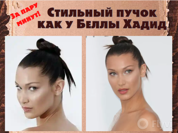 Среди всех образов Беллы Хадид особенно выделяется её стильный пучок. Кажется, что эта прическа требует много времени и усилий, но на самом деле она выполняется буквально за считанные минуты! Хотите научиться делать такой же? Давайте разберём всё поэтапно. Шаг 1. Подготовьте волосы Прежде чем начать, убедитесь, что ваши волосы чистые и не перегружены стайлинговыми средствами. Если времени на мытьё головы нет, воспользуйтесь сухим шампунем, чтобы освежить корни и придать волосам объем. Если волосы уже чистые, но слегка непослушные, нанесите легкий спрей для укладки или термальную воду. Это сделает волосы более управляемыми и позволит легче добиться гладкости. Для работы вам понадобятся: расчёска с мелкими зубьями,тонкая расчёска для проборов, невидимки, резинка под цвет ваших волос. Дополнительно можете использовать: легкий гель или мусс для придания гладкости, сыворотку или масло для кончиков волос (если они склонны к сухости),лЛак для закрепления результата. Шаг 2. Собирайте хвост Бел