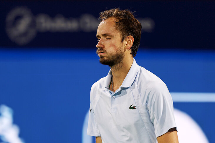 Даниил Медведев снова не выиграл титул. В четвертьфинале турнира в Дубае он проиграл 47-й ракетке мира Тэллону Грикспору – 6:2, 6:7(7), 5:7. Самое обидное, что во втором сете Медведев сначала упустил брейк, а потом и четыре матчбола – два при счете 5:4 и еще два при счете 6:5. Почему все так вышло? *** 1. Медведев начал матч ураганно – особенно хорошо работал прием. Практически идеально и по внешним впечатлениям, и по статистическим показателям. Статистики ATP оценивали его на 9,9 из 10. Два брейка – закономерный результат. 2. Даниил в целом был успешен в агрессии – быстро двигал мяч, бил сильно, не позволял сопернику захватывать инициативу. 3. А потом в Дубае, видимо, начало холодать. Потому что корт как будто замедлился, и у Медведева появились проблемы с атакой. Уже классические и привычные – ему было тяжело пробивать сквозь корт. Поэтому он больше рисковал – и чуть больше ошибался. 4. Грикспор от природы бьет помощнее, и в целом он агрессивнее. В какой-то момент он начал держать по