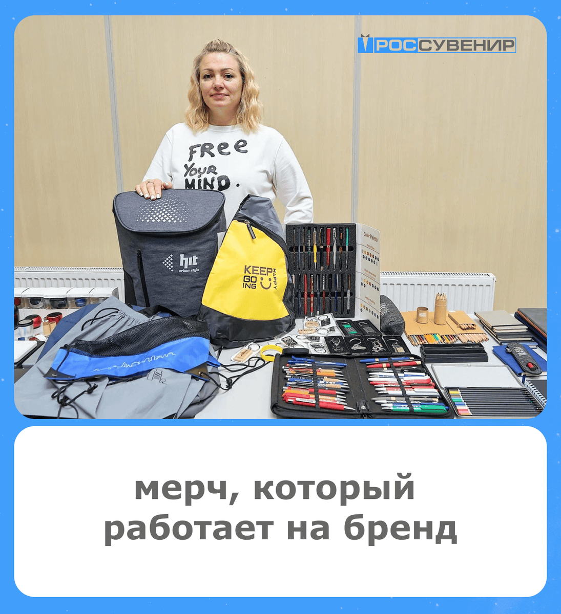 Работает всё — и блокноты, и одежда, и гаджеты. Главное, чтобы это было оригинально и со смыслом. Сейчас в тренде необычные форматы, персонализация, эффект «Вау!».